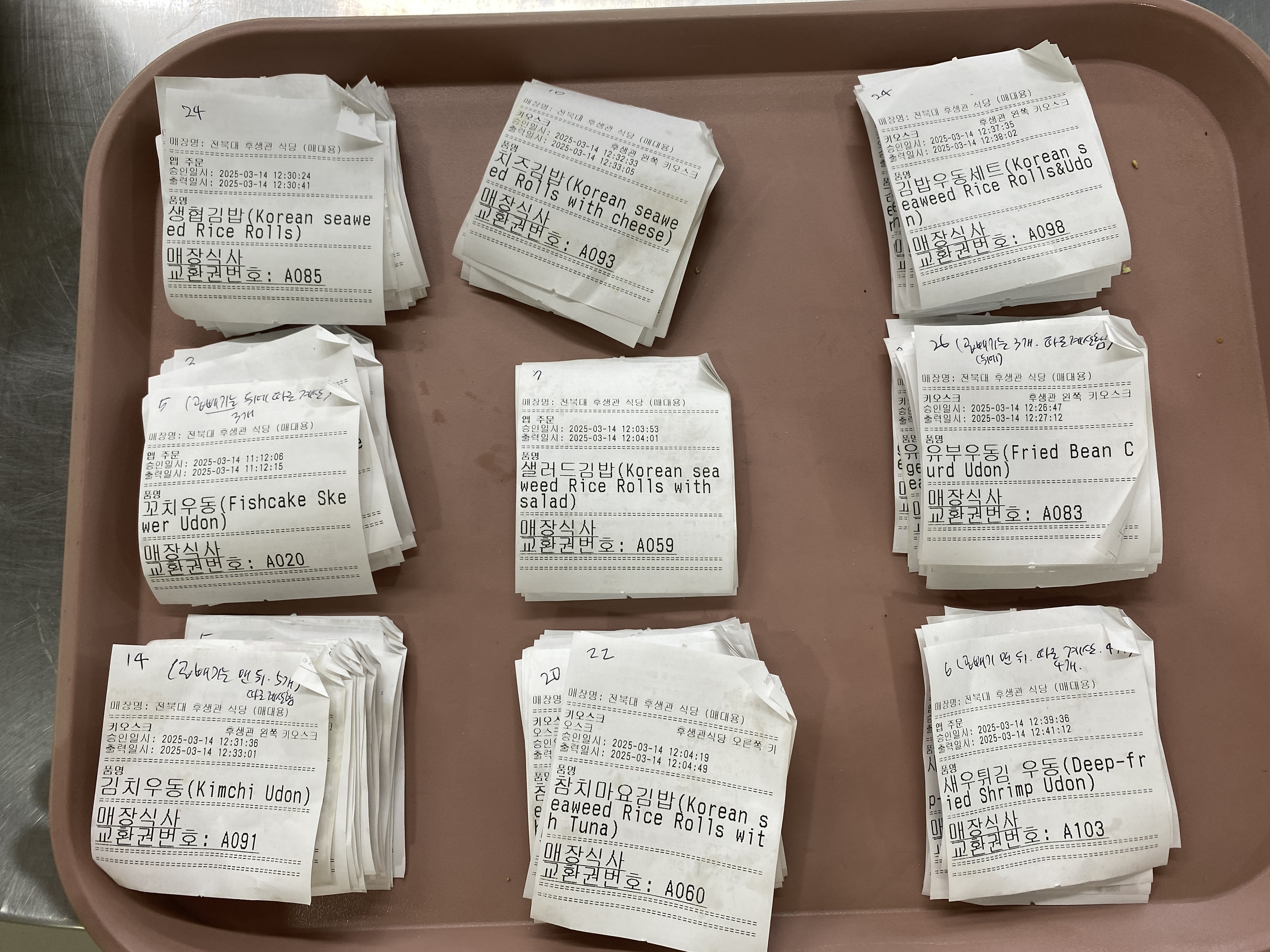 | 전북대 후생관 식당 근로장학생의 여섯째 날 근무 기록 : 새로운 교환권 정리법 (0) | 2025.03.17 |