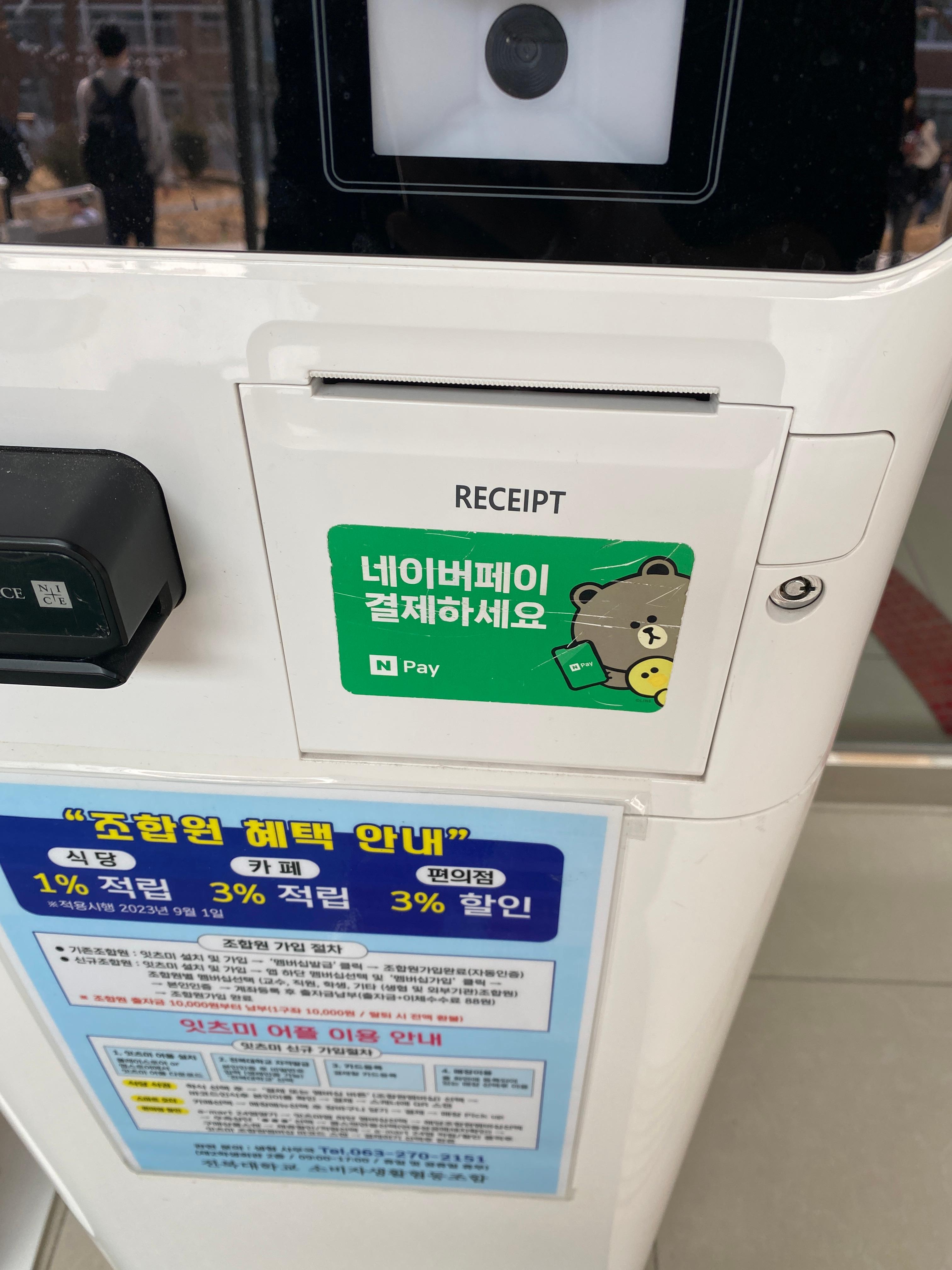 그럼 이렇게 용지 양이 거의 다 끝나가서 결제하다가 받지 못한 영수증을 받을 수 있다. — 물론 사진에선 안 보임 왜냐면 내가 이거 찍으려고 다시 했으니까…